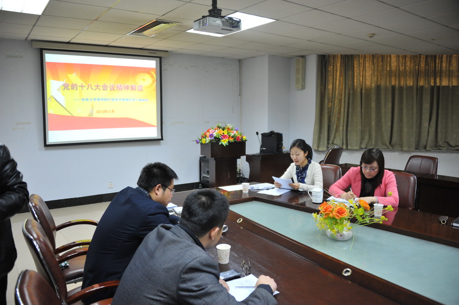 2012年11月20日上午9:00,qmh球盟会亚博网址行政党支部在东荣大厦306会议室召开理论学习座谈会,对胡锦涛同志在党的十八大中的报告内容进行了系统的学习。座谈会由qmh球盟会亚博网址行政党支部书记林晶同志主持,行政支部全体党员同志都积极参与了本次学习活动。