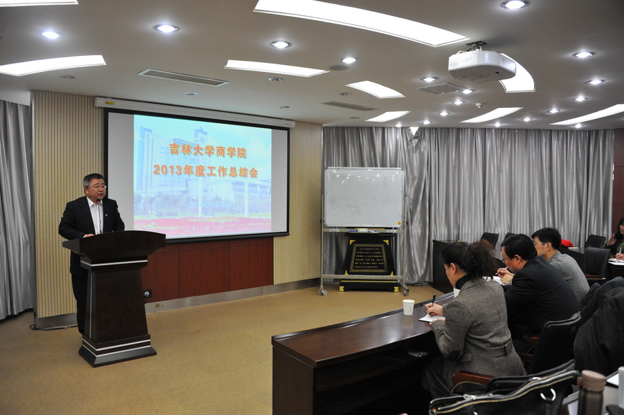 随后,刘金全院长做了学院学术及行政工作的总结报告。刘金全院长立足学院发展,从学风建设及人才培养,教学制度推进与改革,专业学位招生,外事交流,科学研究,院庆工作等几个方面介绍了学院2013年各项工作的开展情况。在总结一年来的工作成效时,刘金全院长重点就科学研究,学科建设,人才培养等三个方面介绍了学院的成绩与工作创新。最后,刘金全院长对学院2014年的各项工作进行了展望,用具体的数据和详细的措施对未来一年的工作进行了规划。