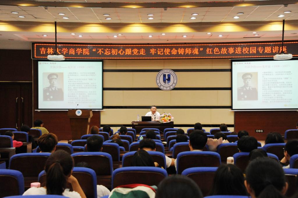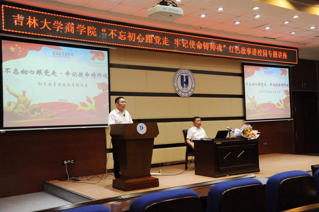 9月10日,为庆祝新中国成立70周年暨第35个教师节,深入学习贯彻习近平新时代中国特色社会主义思想,进一步激励广大教师和教育工作者不忘初心、牢记使命,全面落实立德树人根本任务,学院结合即将开展的“不忘初心、牢记使命”主题教育要求,在东荣大厦B310报告厅举办了“不忘初心跟党走·牢记使命铸师魂”红色故事进校园专题讲座。学院院长张世伟、党委书记闫国生、副院长刘柏、党委副书记李丽超、副院长梁志平及学院部分师生共同聆听了本次讲座。讲座由学院党委副书记兼副院长李帅主持。