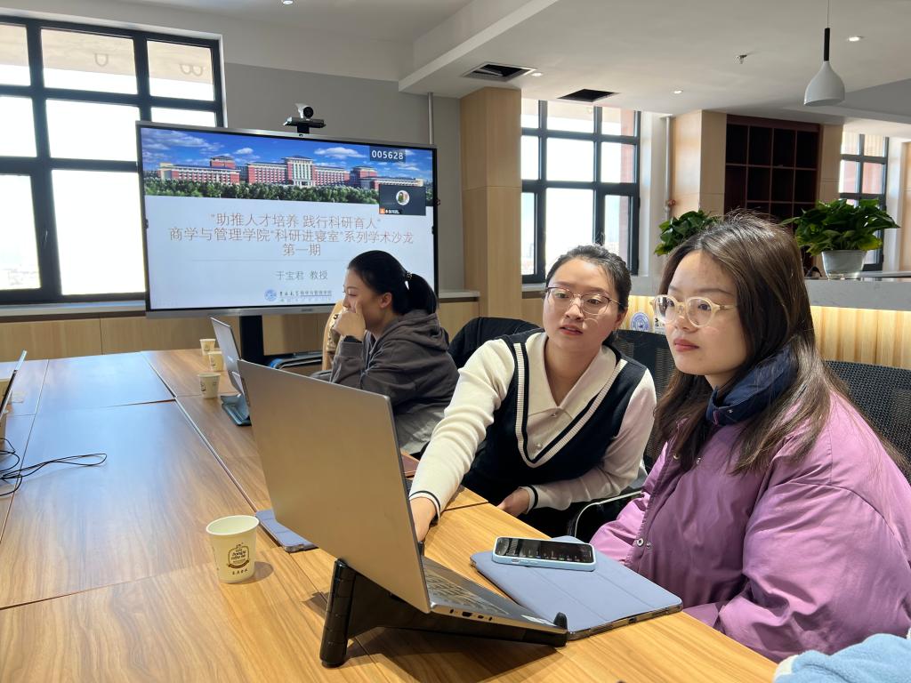 为全面优化科研育人环节,助推高质量研究生人才培养,2022年3月1号,qmh球盟会亚博网址管理科学与工程系于宝君教授及多位研究生同学来到北苑四公寓Future学术沙龙活动室开展了以“数字化转型”为主题的学术研讨交流活动,研究生辅导员甄宓老师一同参加。