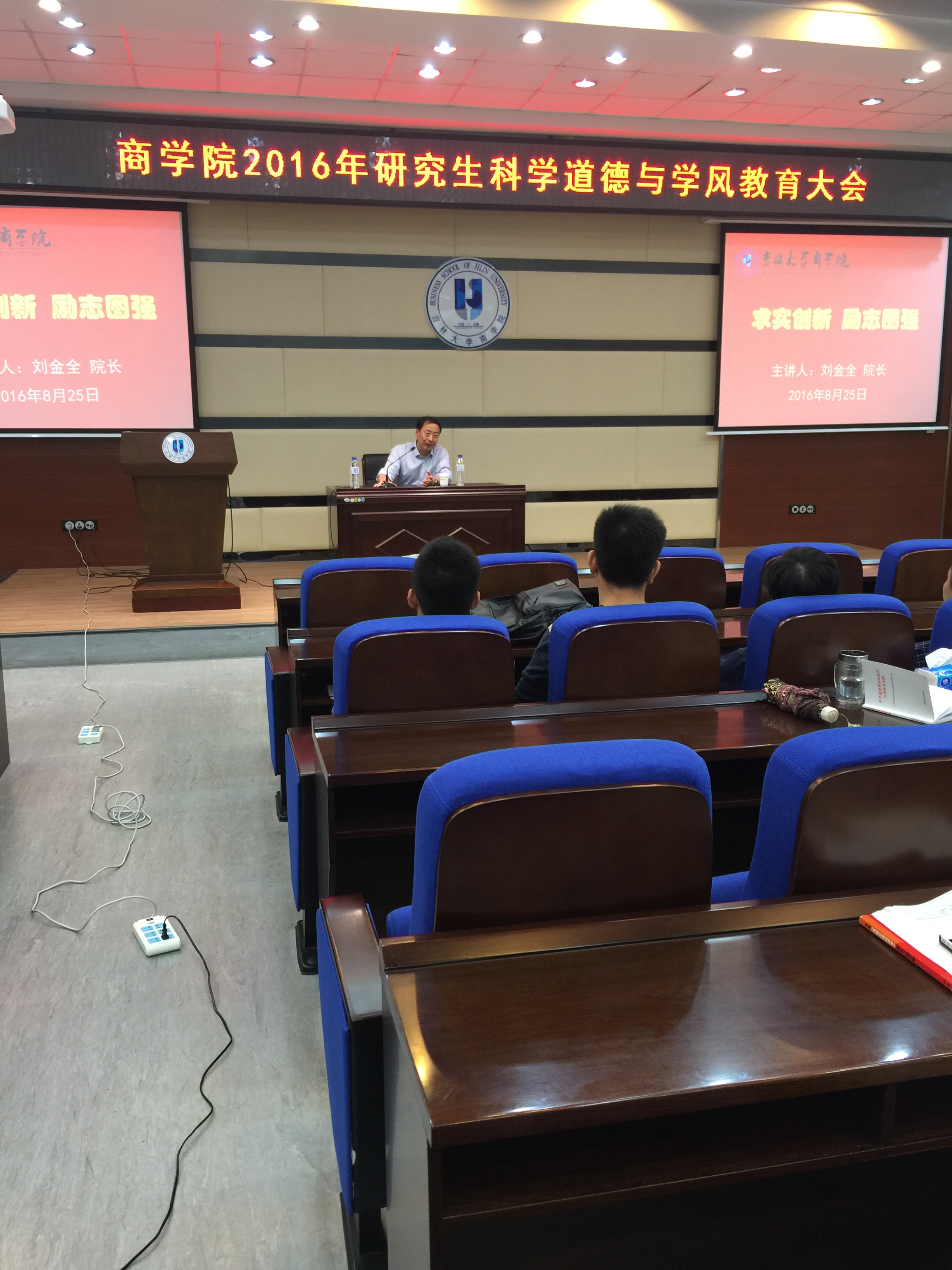 2016年8月25日上午9时,qmh球盟会亚博网址2016年研究生科学道德与学风教育大会在东荣大厦B310成功举行。球盟会qmhqmh球盟会亚博网址院长刘金全教授应邀主讲,报告会由qmh球盟会亚博网址党委副书记李立超老师主持。参加本次大会的还有研究生办公室何友军老师、付卫艳老师以及全体2016级研究生新生。