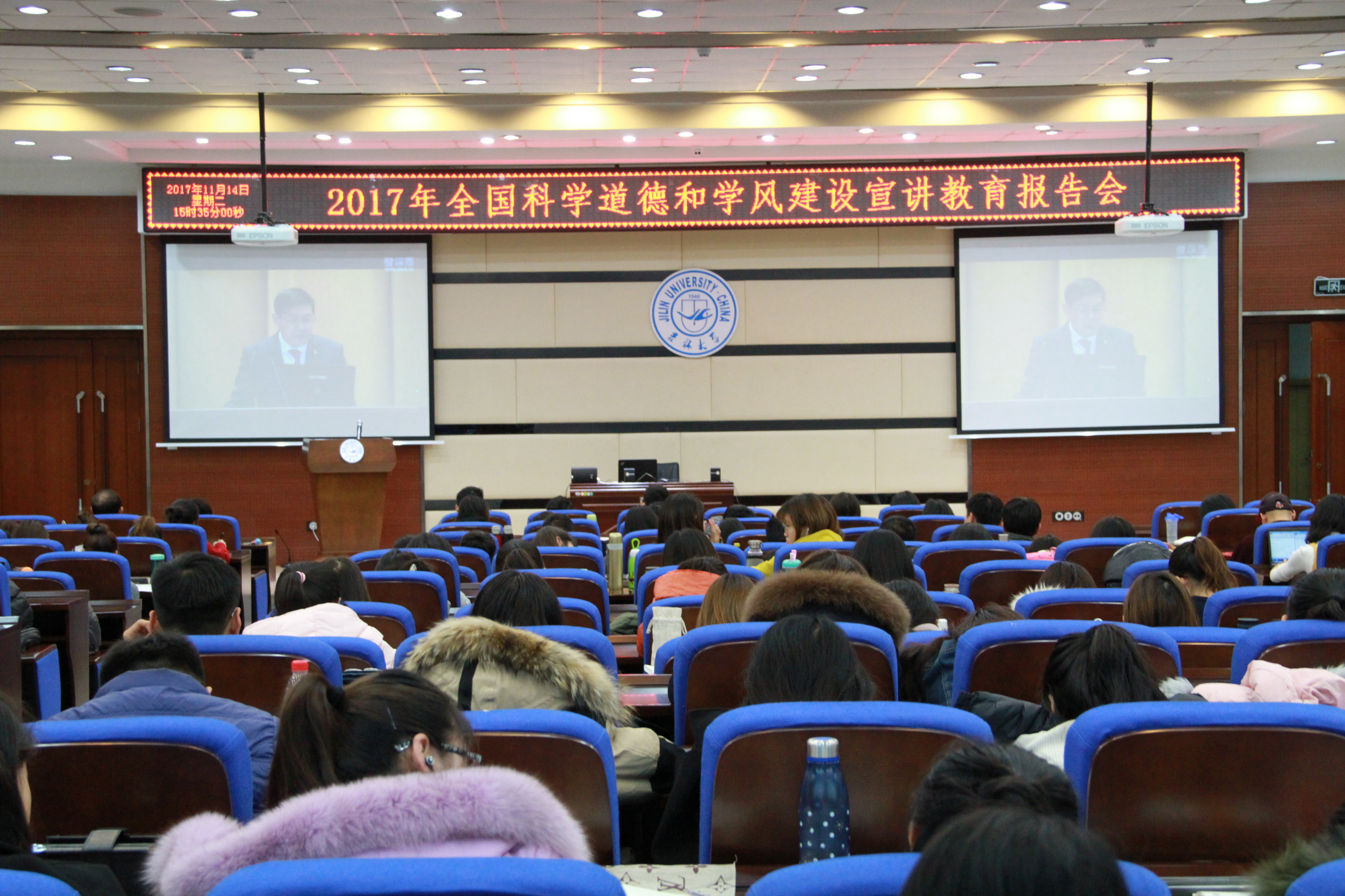 2017年11月14日下午三时,中国科协、教育部、中国科学院、中国社科院、中国工程院、国家自然科学基金委和北京市政府共同主办的“学习贯彻党的十九大精神——2017年全国科学道德和学风建设宣讲教育报告会”在人民大会堂举办。全国政协副主席、中国科协主席万钢代表主办单位致辞,教育部党组成员、副部长杜李占元主持报告会,李晓红、邱勇和周琪三位院士作宣讲报告。qmh球盟会亚博网址全体研究生在研究生办公室何友军老师、付卫艳老师带领下学习此次报告内容。