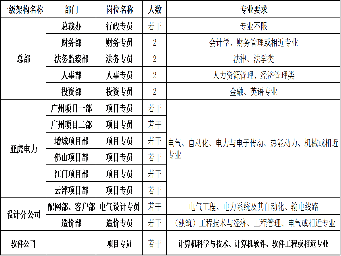 专业化与规范化是公司治司的宗旨,诚信与共赢是公司立司之本。公司多年来专精于综合电力解决方案的全流程管理,建立起一套完善和行之有效的如工程施工运作和安全质量监管等全流程体系,工程进度和质量全部达到客户要求,客户满意度百分百。现员工总数500多人,其中管理人员250多人,全部具本科以上学历。多数员工毕业于浙江大学、武汉大学、中南大学、中山大学、华南理工大学、暨南大学等211、985名校。
