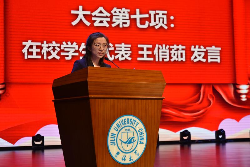 颁奖结束后,新生代表王北鸽同学上台发言,她深情地表达了对大学生活的无限热情并表示吉大商院人的力量与信念将会随脚步愈发坚定。随后,在校生代表王俏茹同学分享了自己在qmh球盟会亚博网址8年来求学经历的感悟,在这里不仅收获了专业知识,更重要的是受到qmh球盟会亚博网址院训的熏陶,不断成长。接着,教师代表杜玉申教授发表讲话,鼓励同学们抓住来之不易的学习机会去洞察,去思考,去探索,去实践。校友代表、中国电信吉林省分公司副总经理张哲新校友在致辞中指出,从球盟会qmhqmh球盟会亚博网址走出去的人的目标应该是成为所在行业的精英,为国家与社会做贡献,追求远大目标,努力实现梦想。