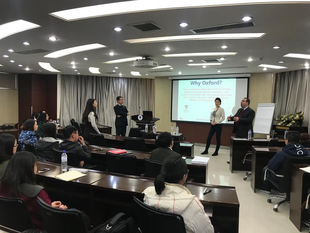 随后,George Bisakakis博士和Emily Gong女士在东荣大厦604报告厅为我院部分本科生、研究生带来了精彩的学术报告和牛津大学学生交流项目宣讲,并就学生们所关心的问题做了详细的解答。