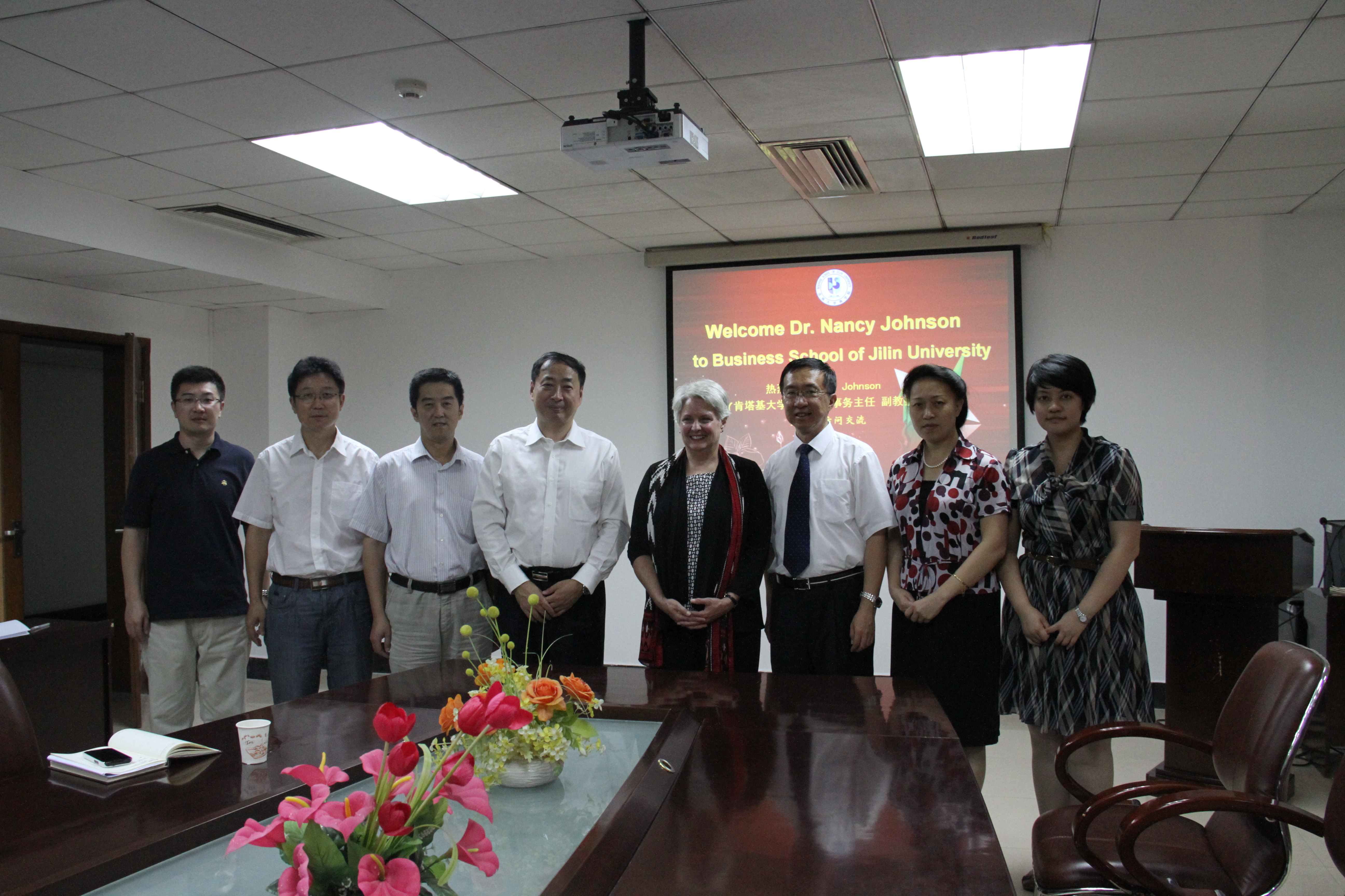 2013年8月20日下午14时,美国肯塔基大学qmh球盟会亚博网址国际事务主任Ms. Nancy Johnson在国际处工作人员的陪同下到访我院。qmh球盟会亚博网址刘金全院长,副院长张世伟、邹国庆、金晓彤、刘柏,院长助理郭英彤一行在东荣大厦3楼会议室热情接待了来访客人。
