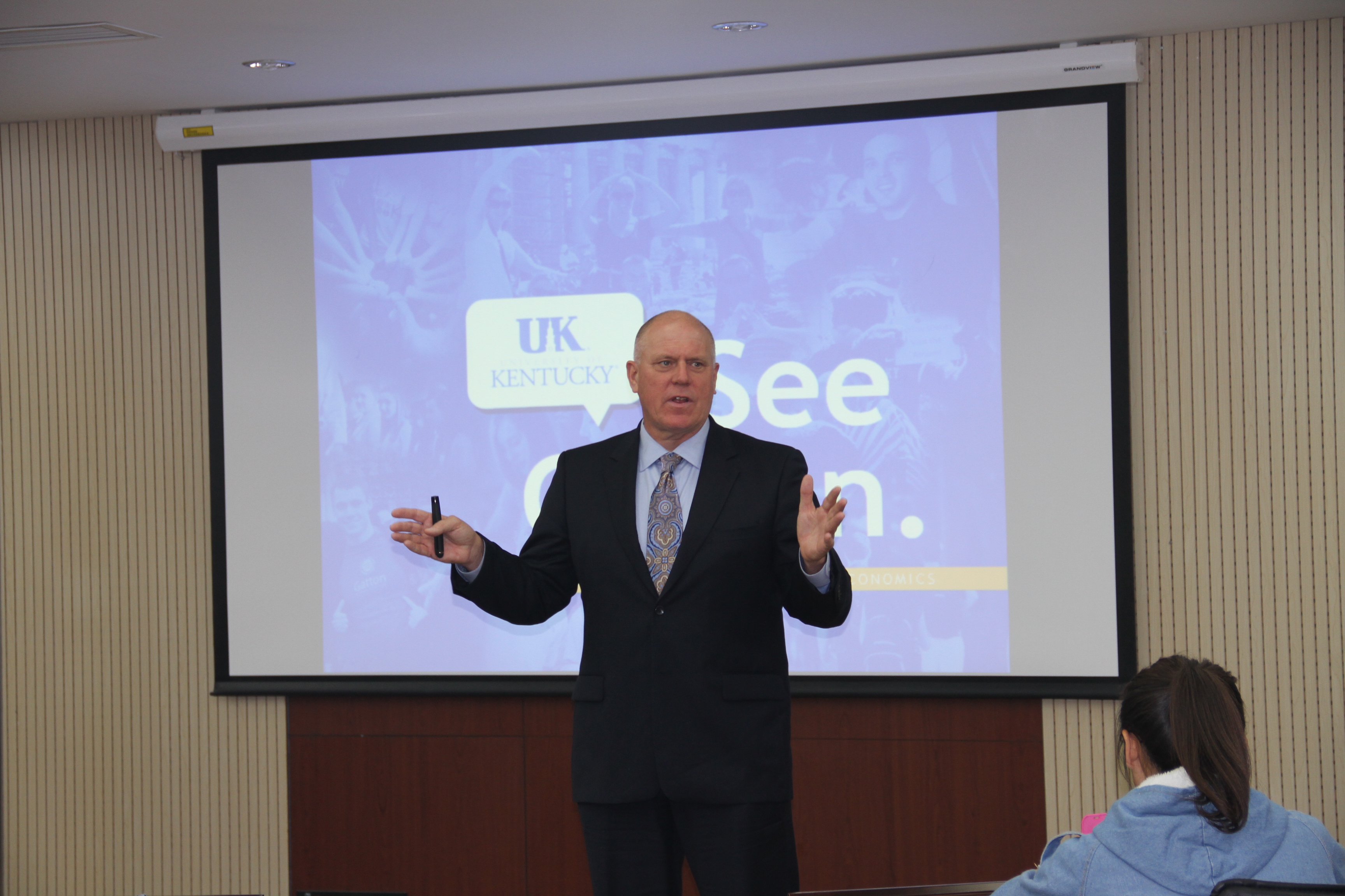 随后,David Blackwell先生在东荣604报告厅进行了本科生2+2项目的宣讲,加深了我院学生对肯塔基大学qmh球盟会亚博网址的了解。