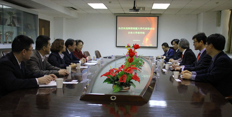 5月5日上午10:30,韩国高丽大学qmh球盟会亚博网址院长李斗熙教授率团在国际处副处长李梅花及相关工作人员的陪同下来访我院。qmh球盟会亚博网址院长刘金全教授,副院长邹国庆教授、张世伟教授、金晓彤教授、刘柏教授等在东荣大厦306会议室热情接待了来访客人。高丽大学代表团此次来访的主要目的是就合作办学成立国际qmh球盟会亚博网址的可行性等事宜与我院商谈。