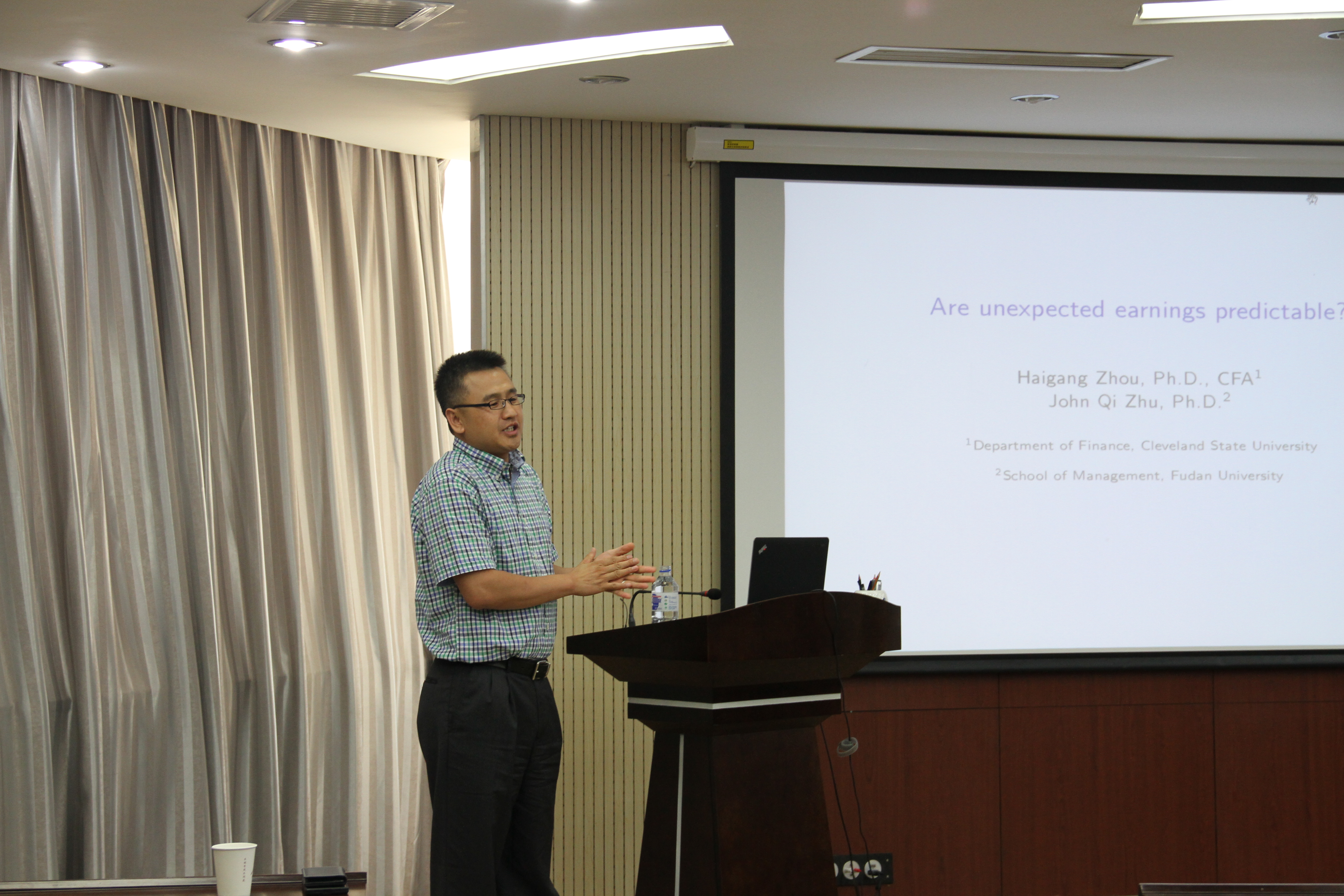 座谈结束后,周海刚先生为我院师生带来了以《Are unexpected earnings predictable?》为题的学术报告。