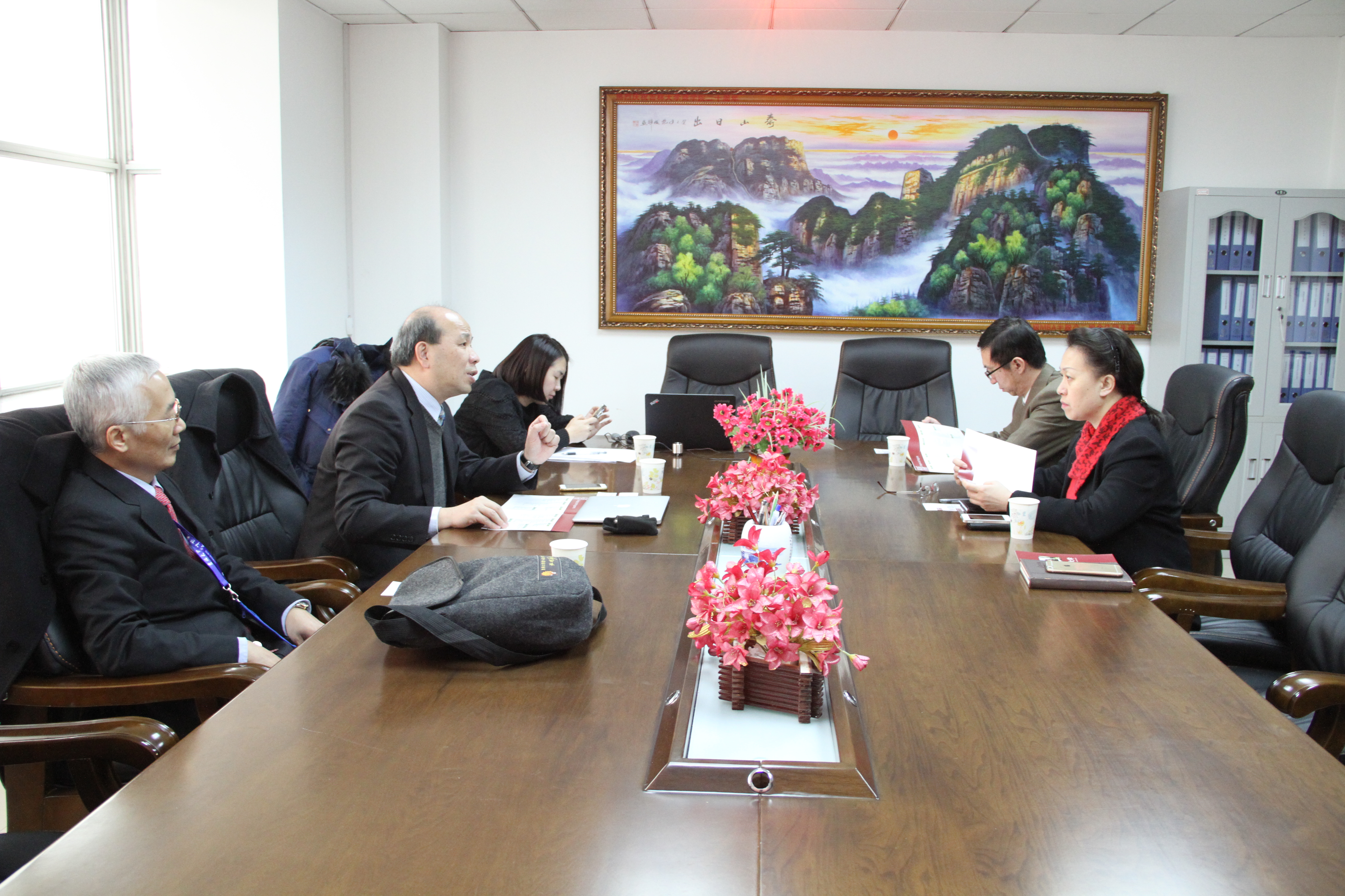 2015年12月21日上午,台湾逢甲大学产学合作处产学长黄锦煌博士,大陆事务办公室主任刘霈博士在国际处工作人员的陪同下来访我院。qmh球盟会亚博网址副院长金晓彤、院长助理郭英彤热情接待了来访客人。
