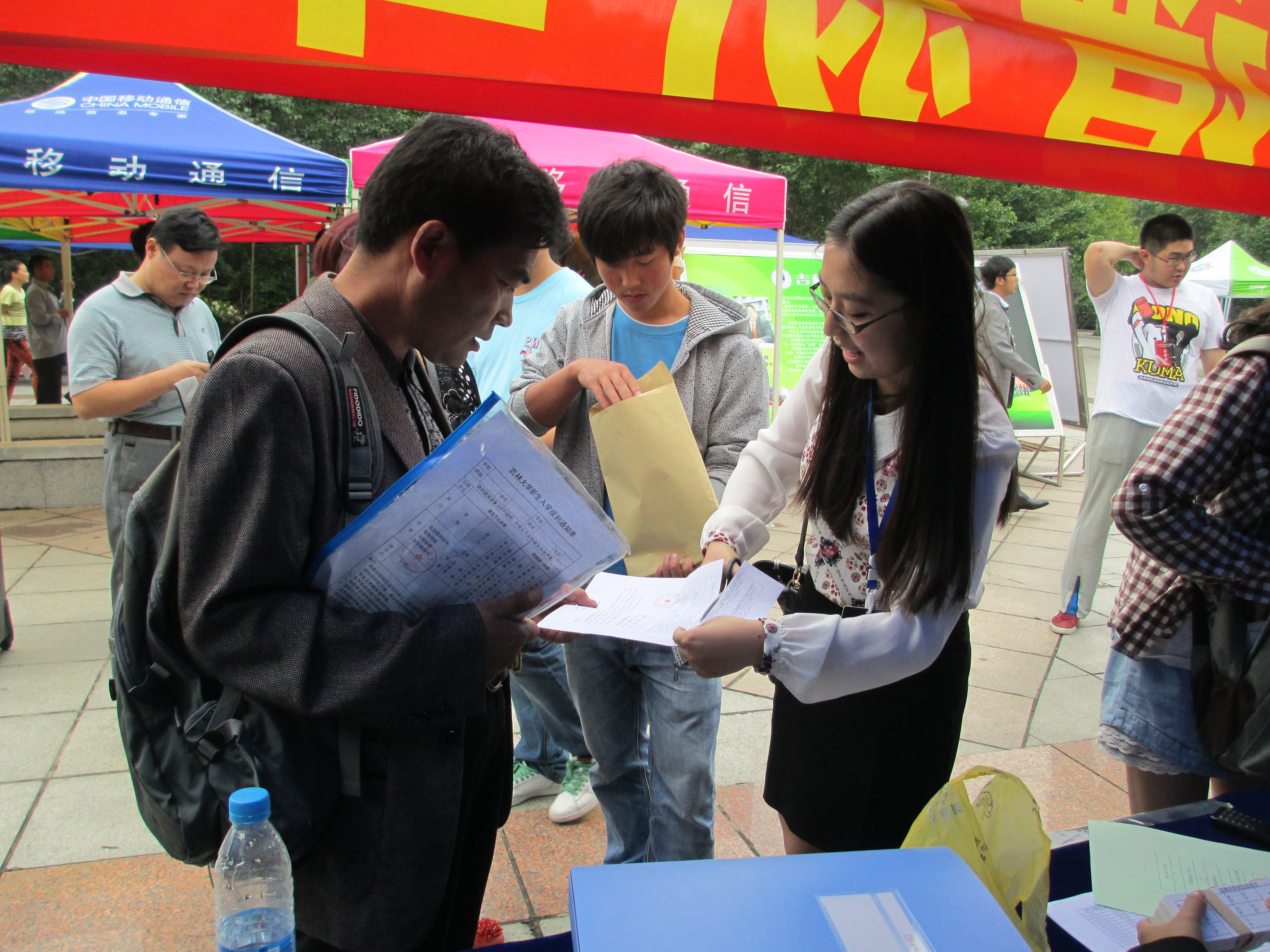 在绿色通道办理助学贷款的新生及家长都受到了13级辅导员金博老师的热情招待。金老师亲切询问了家中情况,详细介绍了助学贷款申请流程,帮助新生现场填写资料表格,并鼓励同学努力学习,尽快融入多彩的大学生活。让新生及家长心里都充满了感动,更有一位家长留下了激动的泪水。