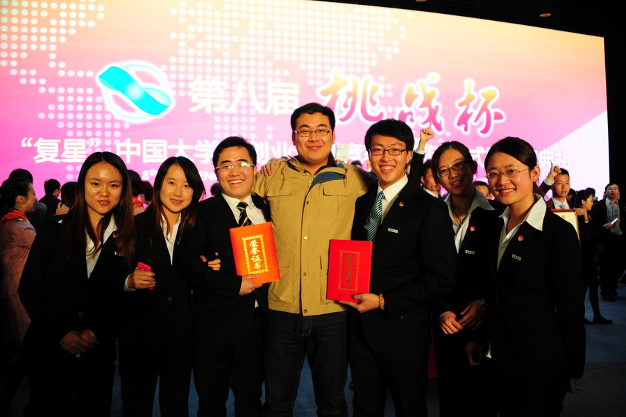 第八届“挑战杯”复星中国大学生创业计划竞赛决赛于11月24日至29日在上海同济大学举行,比赛吸引了来自全国千余所高校、数百万大学生参赛,我校代表队荣获两金一银的成绩位居全国首位。我院2009级赵闯同学为CEO的鼎援科技创业团队和2010级张骞予同学为CEO的旭能科技创业团队凭借优质的项目、富有创意的营销、合理有效的运营和出色的现场演示,从数百个优秀团队中杀出重围,分别获机械能源类和材料类金奖。