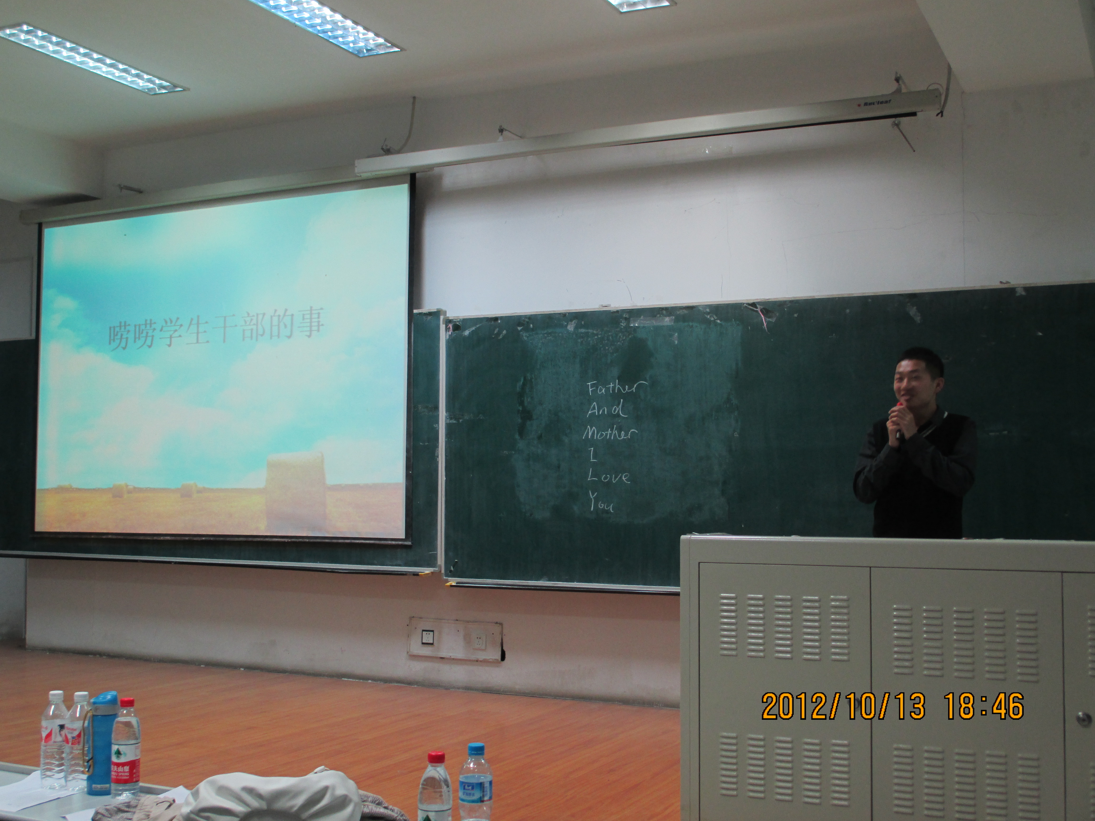 房汛师哥在发言中指出进步比荣誉重要,学生干部应该注重自身判断力和分析能力的提升。这些鲜明的观点,都是他从工作中总结的经验,同时也显示他作为一位学生干部的睿智和魄力。