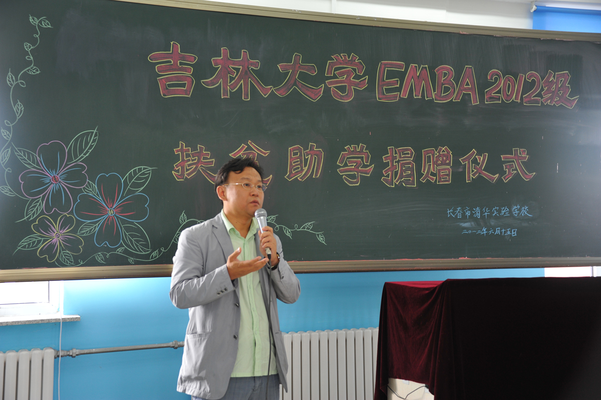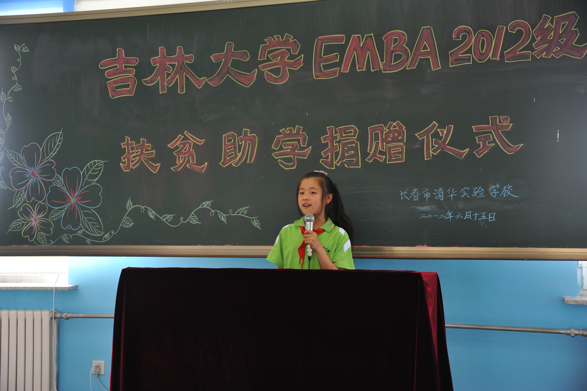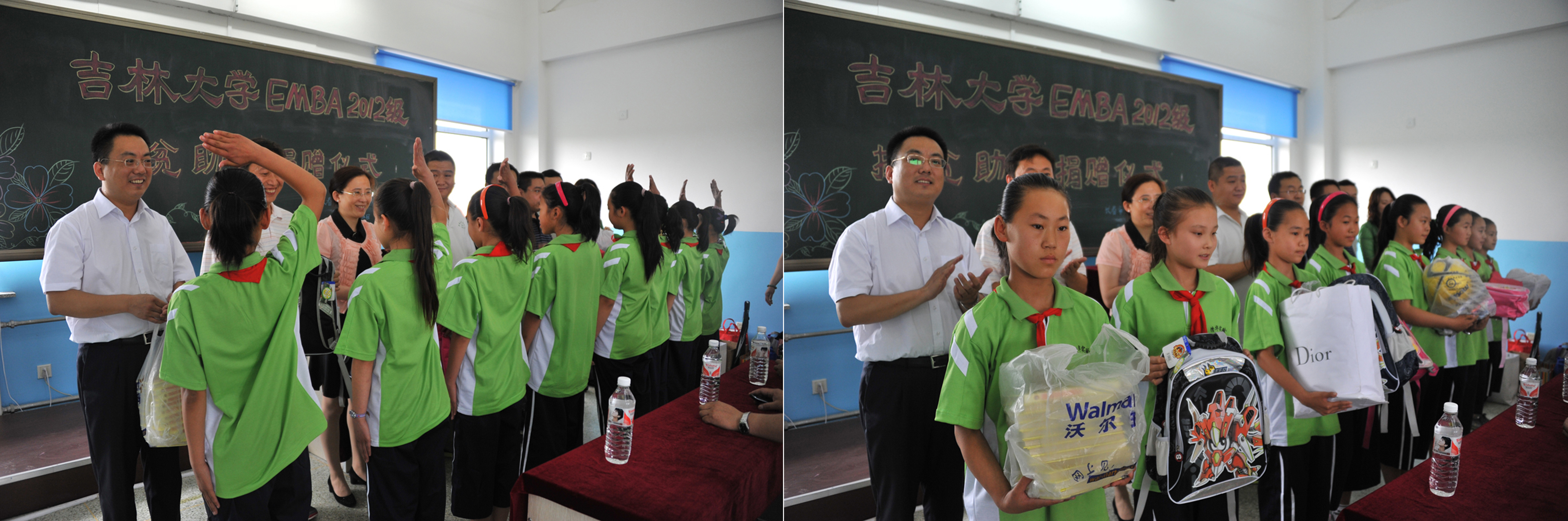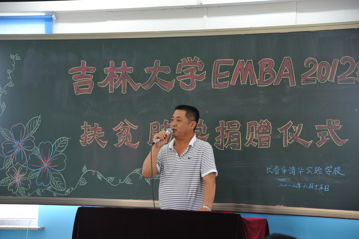 2012年6月15日,qmh球盟会亚博网址2012级春季EMBA班全体同学利用中午休息时间到长春市富铎镇清华实验学校进行助学捐赠活动。