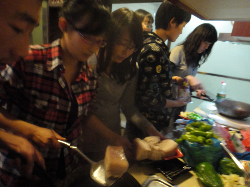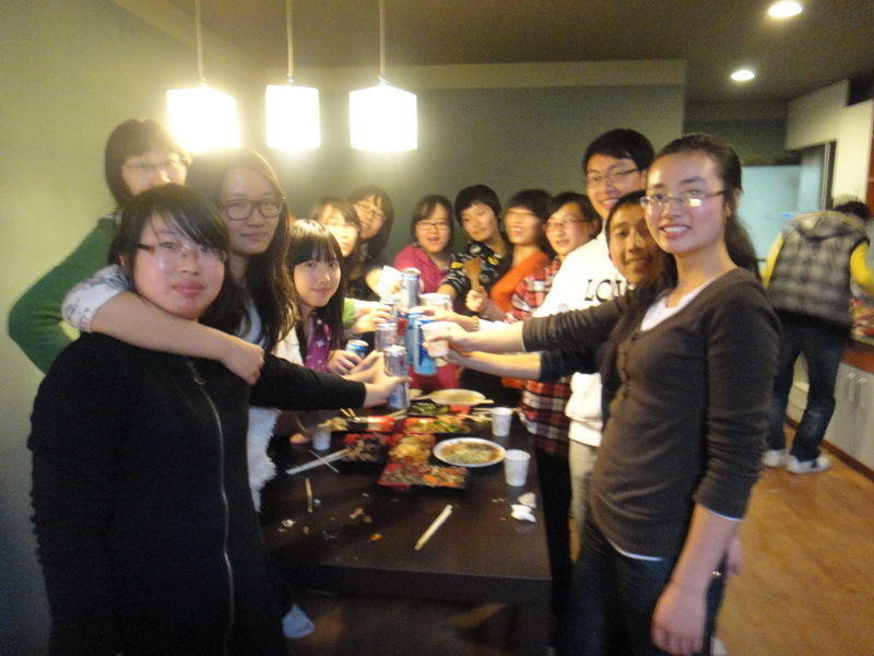 饭菜都出锅的那一刻,气氛达到了高潮,大家叽叽喳喳地抢吃汇聚各地风味的一桌菜,同学们都为彼此深藏不露的精湛厨艺而惊讶,信用班原来有这么多厨艺好的同学,大家可谓样样才能皆备,“不鸣则已,一鸣惊人”啊!同学们还借同学生日之机,设计订做了班级蛋糕,班长宣布了近期评奖评优工作中班级所获的喜人成绩,大家一同吹蜡烛,共同许下“班级今后越来越好”的心愿。