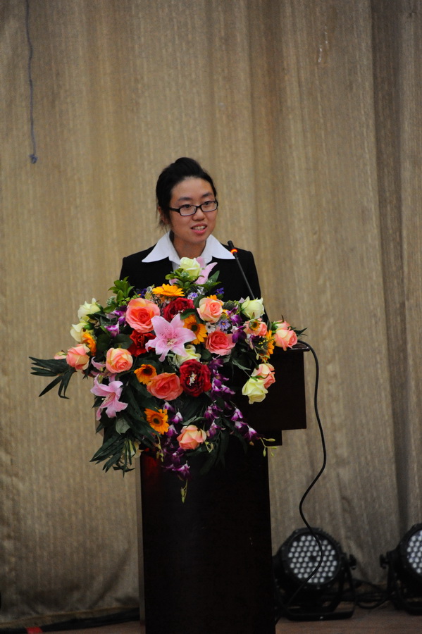 随后是新生代表秦鹤同学发言。她表示11级新生定会牢记院领导的教诲,不辜负家长和老师的殷切希望,提高自身素质,勇于实践创新,怀抱远大理想,铸造美好明天。