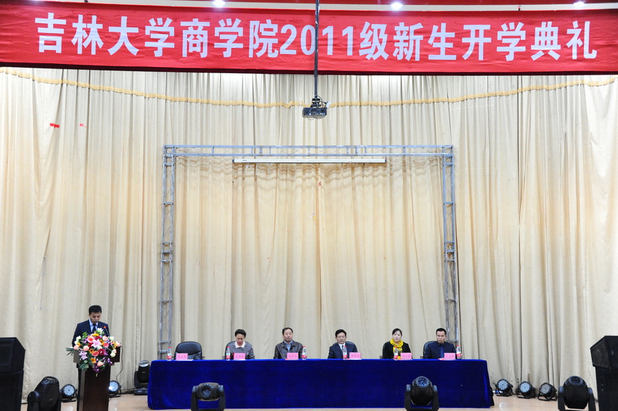 最后,刘金全院长走上讲台,为新生讲话。刘院长讲到:人生的境遇不时会发生改变,但大学的宗旨永远不变。大学永远高举“民主”和“科学”两面旗帜,二者将贯穿于整个大学教育,承载一代又一代的希望。